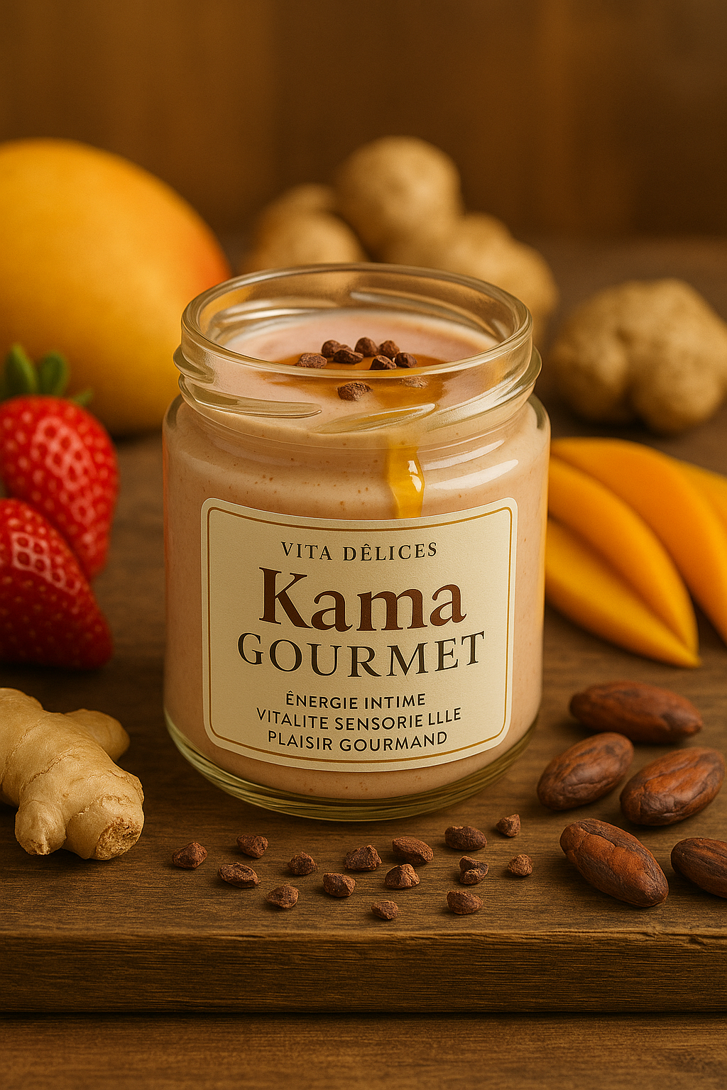 Formulé avec des super-aliments aphrodisiaques bio et des ferments lactiques vivants, KamaGourmet agit en profondeur sur la vitalité sexuelle, l’équilibre hormonal et le bien-être émotionnel, tout en régalant vos papilles.
